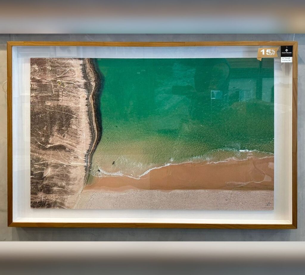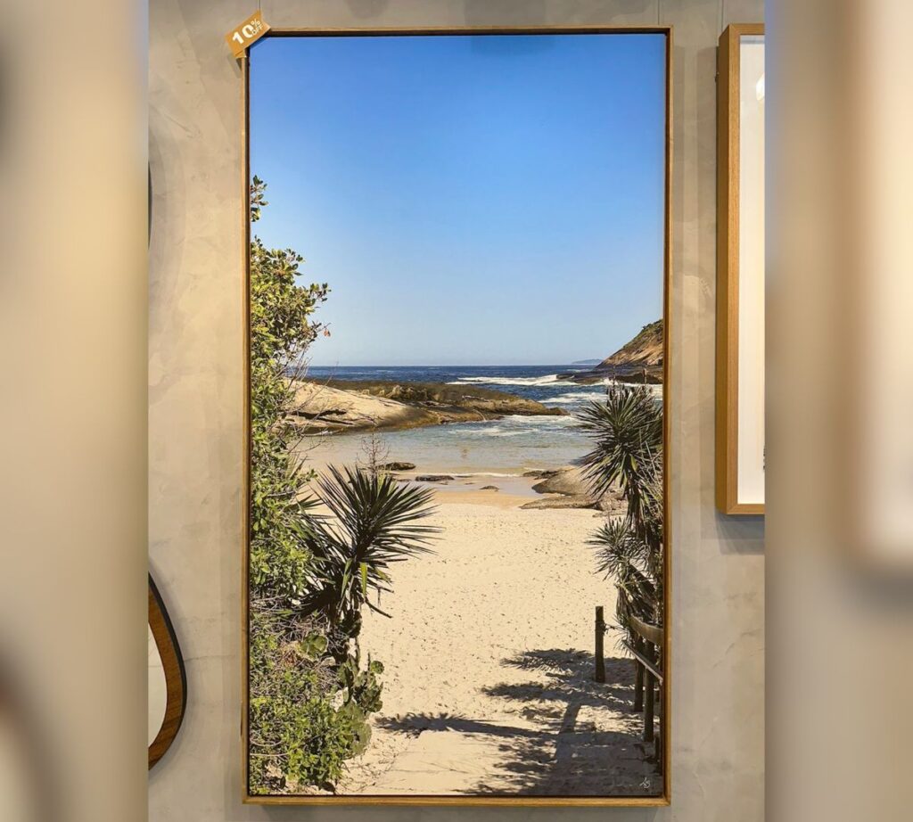 Impressão fine art com pigmento natural em Canvas com moldura Canaleta Freijó – Montagem flutuante faceado